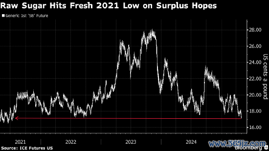 原糖期货在触及四年来新低后,正迈向单周下跌,因供应前景改善与需求疲弱的双重因素共同打压市场。